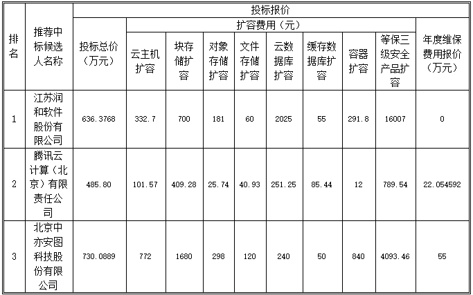 湖南国联招标有限公司受湖南省农村信用社联合社的委托,对福祥行业云平台建设项目(招标编号:0646-254HNGLN0613)所需货物和服务进行国内公开招标。本项目的招标采购讯息于2025年9月22日在“中国招投标公共服务平台”(http://www.cebpubservice.com/)、“湖南省农村信用社联合社官网”(http://www.hnnxs.com)上发布。开标仪式于2025年10月14日上午9:30(北京时间)在长沙市开福区黄兴北路112号华润置地中心2号栋45楼湖南国联招标有限公司开标,随后进行评标。评标委员会成员经过认真、仔细的评议,并提出评标报告,推荐的中标候选人排序如下: