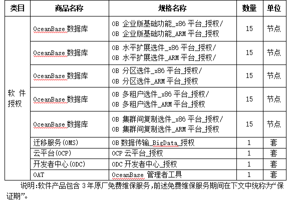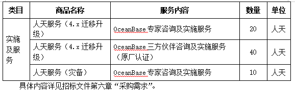 2、OceanBase数据库软件实施服务采购内容如下所示: