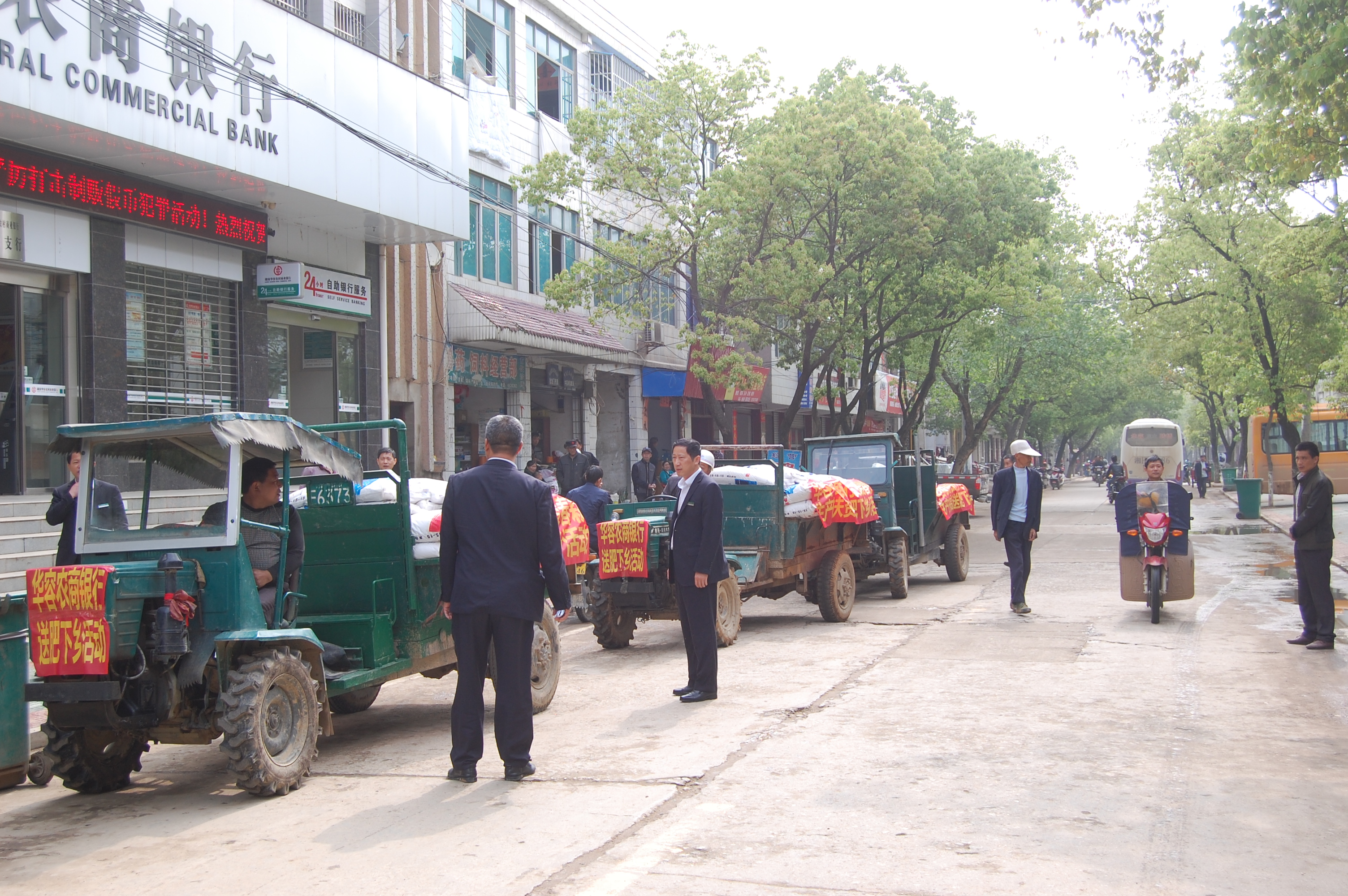 4月27日上午,东山镇大旺村热闹非凡,全村95户贫困户集聚大旺村部,有的推着单车,有的骑着摩托,脸上都露着笑容,原来是华容农商银行给该村贫困户送来了春耕物资,肥料6吨、农药2吨、种子8000斤。