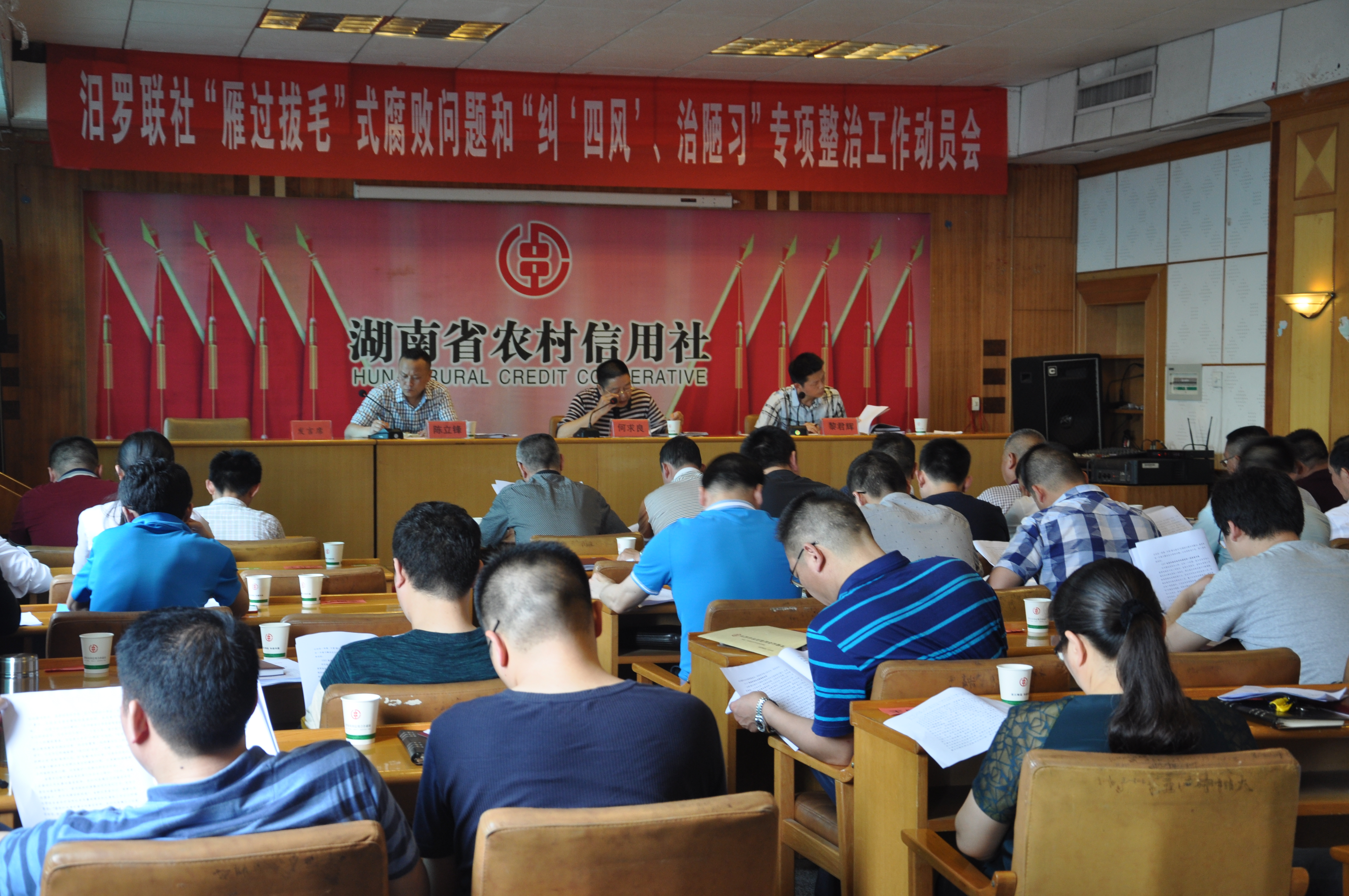 5月6日,汨罗联社组织召开了“雁过拨毛”式腐败问题和“纠‘四风’、治陋习”专项整治工作动员会议。该联社党委班子成员、副协理员、各部室正副经理、网点正副主任、基层党支部书记共51人参加了会议。正式启动“两项整治”工作引擎。