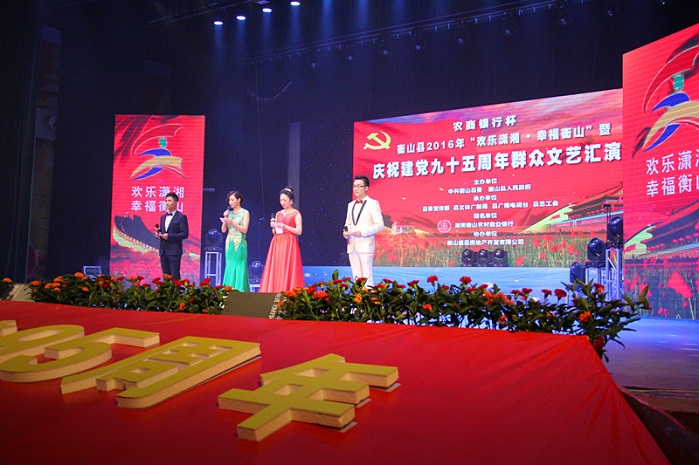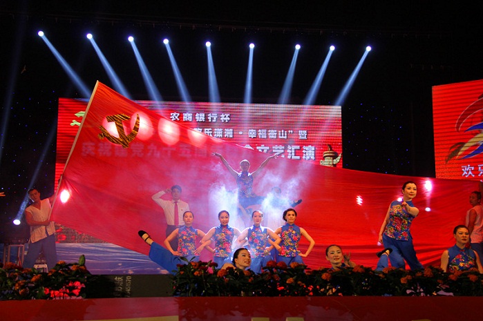 6月30日晚,由中共衡山县委、县政府主办,衡山农商银行冠名的“农商银行杯”2016年“欢乐潇湘·幸福衡山”暨庆祝建党95周年文艺汇演决赛在衡山剧院精彩上演。本次群众文艺汇演历时2个多月,经过各系统、各乡镇的初赛,共遴选出28支队伍,通过6月29日复赛的激烈角逐,17支代表队、400名选手晋级决赛。本次参赛节目的形式、内容、规模、影响力等方面都有了创新和提高,展示了衡山文化建设的丰硕成果,体现了衡山的人文魅力,彰显了衡山强大的人气凝聚,为庆祝建党95周年营造了浓厚的文化氛围。