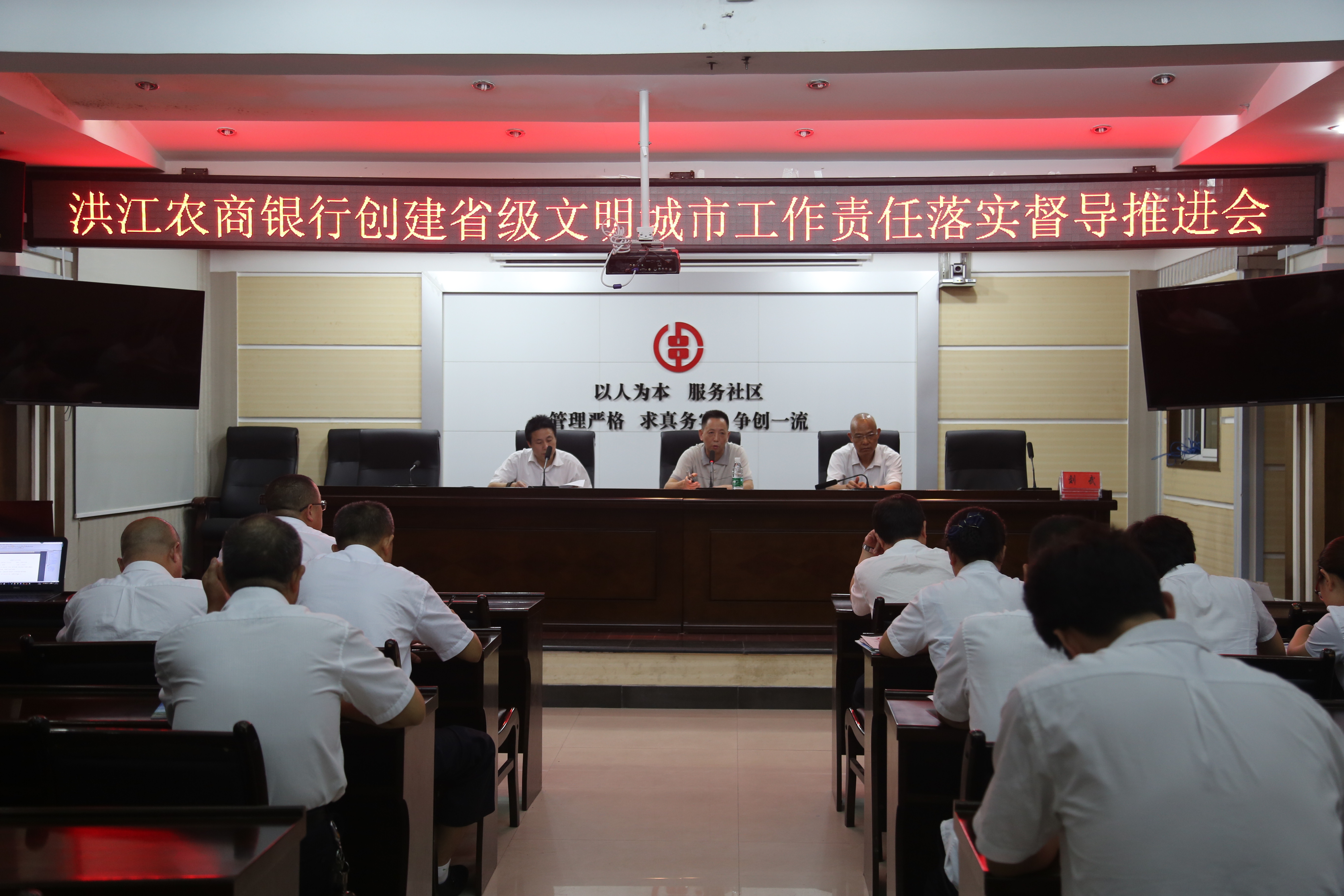 7月20日下午3点,洪江农商银行在五楼会议室召开了创建省级文明城市工作推动部署会,董事长蒋明主持会议,部门经理、城区客户经理参加会议。