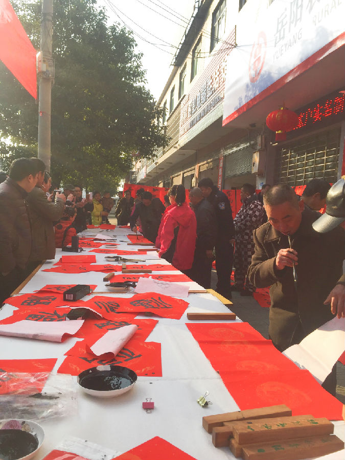 为更好推动“2017年一季度开门红”工作,许市支行携手许市黄金国学堂举办“迎新春 送对联”文化惠民活动。此次活动邀请了许市镇民间书法名家和国学堂的小书法家,在支行门前摆好书台、准备好笔纸研磨,不畏严寒现场挥毫给到访客户题写一副副充满喜庆、吉祥如意的迎春对联。现场气氛热闹,暖意融融,前来领取对联的居民络绎不绝,此次活动吸引了上千群众的参加,受到群众的热烈欢迎。