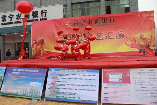 为宣传品牌形象,常宁农村商业银行开展了“走基层文艺汇演”活动。本次活动由员工自编自导自演节目,在全市26个乡镇巡回演出,展示常宁农商行的发展历程和经营成果,分发宣传资料,宣传福祥便民卡、福祥IC卡、公务卡等新的业务产品以及新的经营理念,新的服务手段,密切了农商行与“三农”的鱼水关系,全面提升了常宁农商行的社会形象。