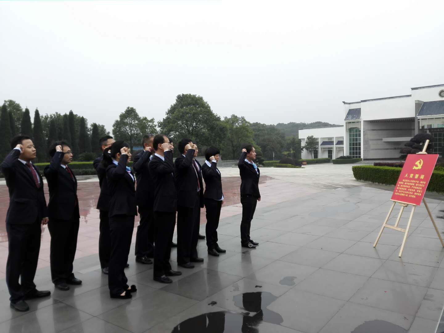 在烈士故土,党员们佩戴党徽,举起右手,再次向党旗宣誓,重温入党誓词。党总支书记佘耀武同志发表讲话,一是不忘初心、勇于担当,要有责任担当、使命担当和事业担当;二是不忘初心、锐意创新,要在管理上和业务上不断创新;三是不忘初心、追求情怀,要提升自我、发展自我和成就自我。他强调,年青就是资本,我们党的革命前辈都是在年青时期就树立了远大的理想,并付出行动,不畏牺牲。希望我行年青人一定要有理想,有行动,能吃苦耐劳,不仅要做好本职工作,还要多写论文在专业杂志上发表,为自己将来的发展准备理论基础,提高自身的竞争力。