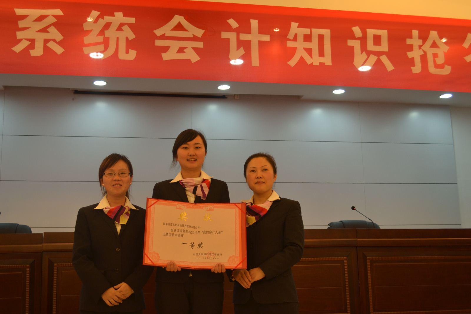 10月23日,在农业银行洪江市支行会议室6支决赛队员,角逐“我的会计人生”为主题的洪江市金融机构的冠、亚军会计知识抢答赛。洪江农商行参赛选手一路过关斩将,在会计技能、笔试小组竞赛成绩名列前茅,会计知识抢答赛成绩排名第二,综合成绩排名第一。