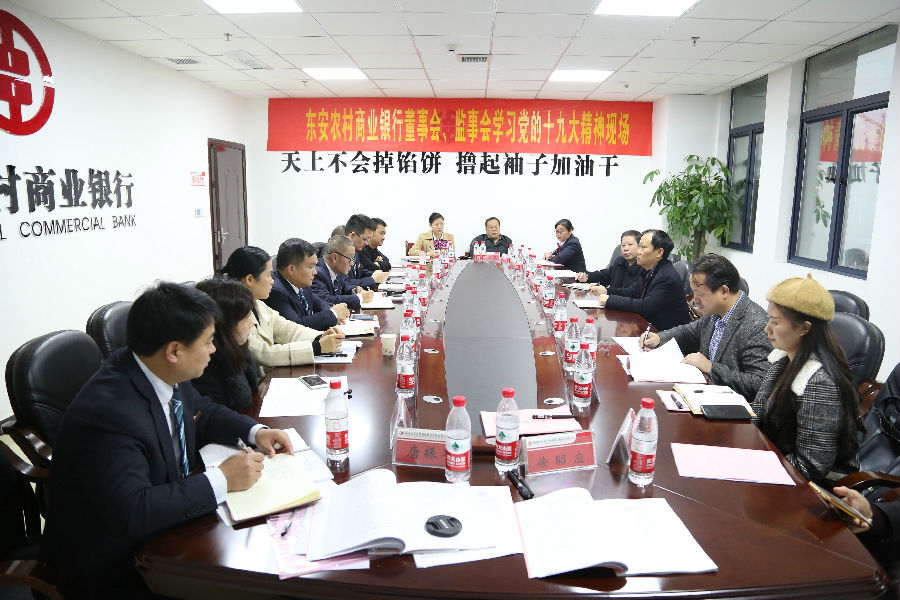 近日,东安农商银行组织该行董事会、监事会成员20多人集中学习党的十九大精神,并邀请永州银监分局副局长李树屏和东安县政府副县长沈中心作重要讲话;这也是继东安农村商业银行党委中心组和全体党员职工学习党的十九大精神后的又一项学习。