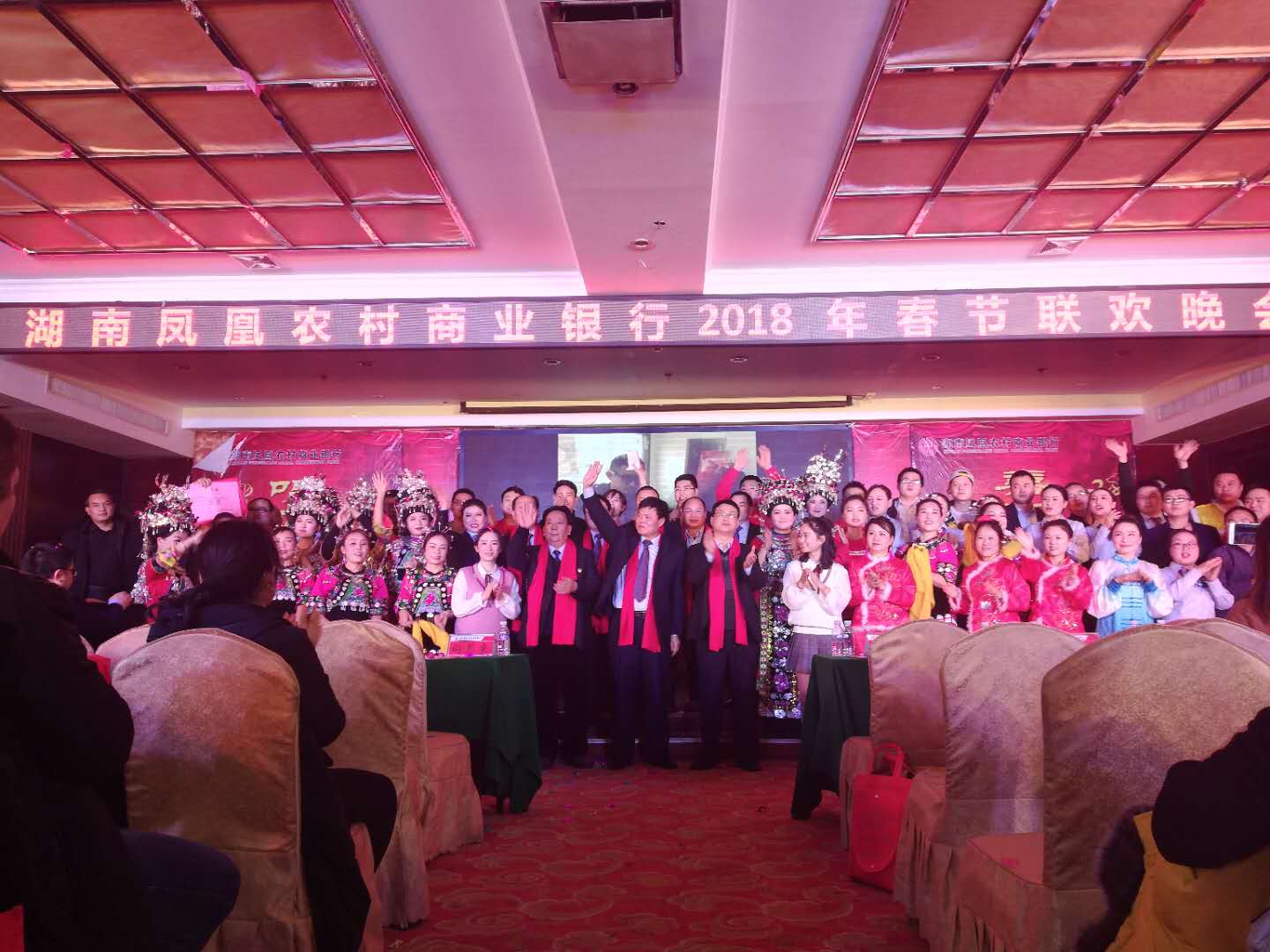 2月9日晚,凤凰农商银行2018新春晚会在凤凰国际酒店5楼会议厅盛大开演。凤凰农商银行领导班子、部分客户、参演人员、基层员工代表及家属等200余名观众共赏晚会。