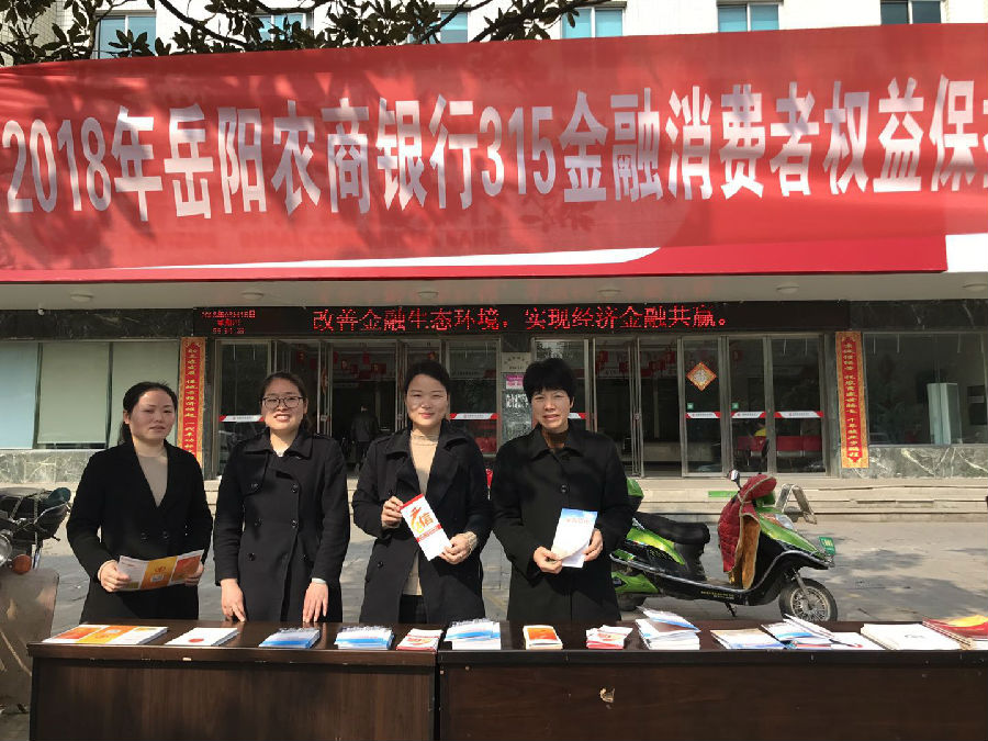 为加强公众金融知识教育,引导和帮助消费者掌握金融知识,提高群众金融安全意识,3月15日,岳阳农商银行开展金融消费者权益保护宣传活动,全行共组织7个支行网点同步做好宣传工作,实现城乡区域全覆盖。
