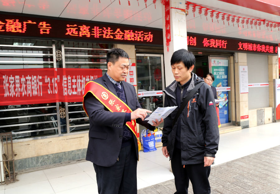 3月15日,张家界市“品质消费 美好生活——纪念3·15国际消费者权益日”宣传咨询服务活动在该市步行街广场举行。张家界农商银行派出工作人员,深入活动现场,开展了以“信息主体权益保护”为主体的消费者权益保护宣传。为广大市民重点宣讲了珍爱个人信用、识别非法金融广告、网络诈骗的预防技巧、手机银行使用流程、存款保险和银行账户管理新规等老百姓普遍关注,与老百姓生活密切相关的金融知识,警醒市民提高防骗意识,远离非法金融活动,保护个人财产安全。