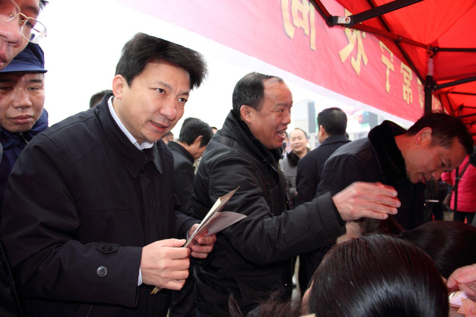 图为常宁市委书记何录春(左一)夸赞常宁农商行“流动服务,农商银行做得好!”