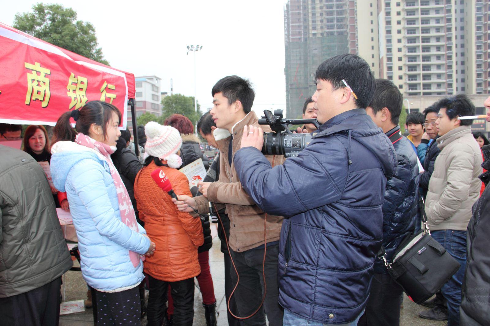 常宁农商行推出的“流动银行”服务吸引地方媒体趋之若鹜,图为常宁报和常宁电视台记者现场采访