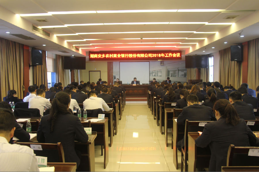 3月29日,安乡农商银行2018年工作会议在总行六楼会议室召开。总行班子成员、行长助理、部室正副经理,支行正副行长、委派会计,先进单位(集体)负责人、先进个人及先进工作者共120余人参加会议。会议由行长李刚鸣主持。