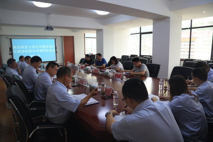 5月15日上午,湘西银监分局局长刘俊一行4人莅临凤凰农商银行,对政务类贷款、资金业务等相关情况进行调研座谈。凤凰农商银行班子成员、相关部室负责人参加座谈会。