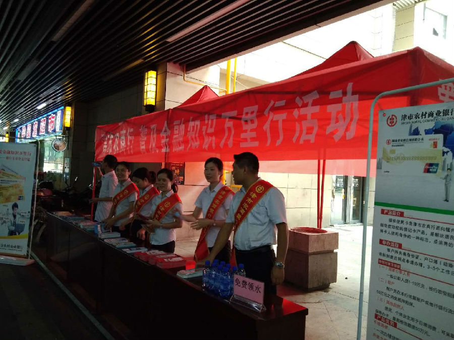 为持续推动金融知识普及宣传教育工作,提高社会公众金融素养和金融风险防范意识,切实维护消费者合法权益.根据省联社、中国银行业协会的安排部署,近日,津市农商行分别在当地各乡镇、城区市中心举办了“普及金融知识万里行之支付安全宣传月”活动。