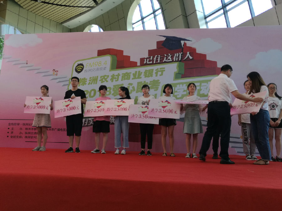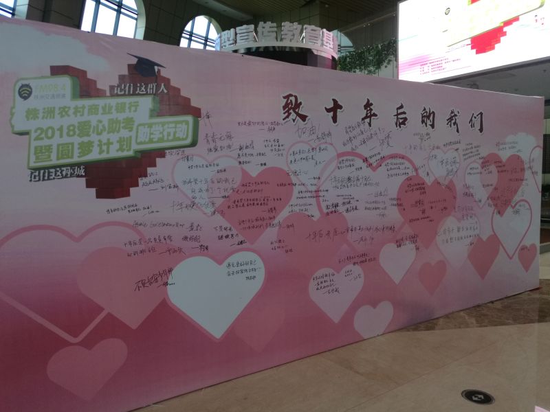8月23日,株洲市2018爱心助考暨圆梦计划助学行动捐赠仪式在株洲神农塔一楼大厅隆重举行。株洲农村商业银行向100名贫困学子捐助50万元,助其圆大学梦。100名被资助学子及部分家长齐聚活动现场,学子们纷纷在“致十年后的我们”许愿墙上签名,许下自己最美好的心愿。