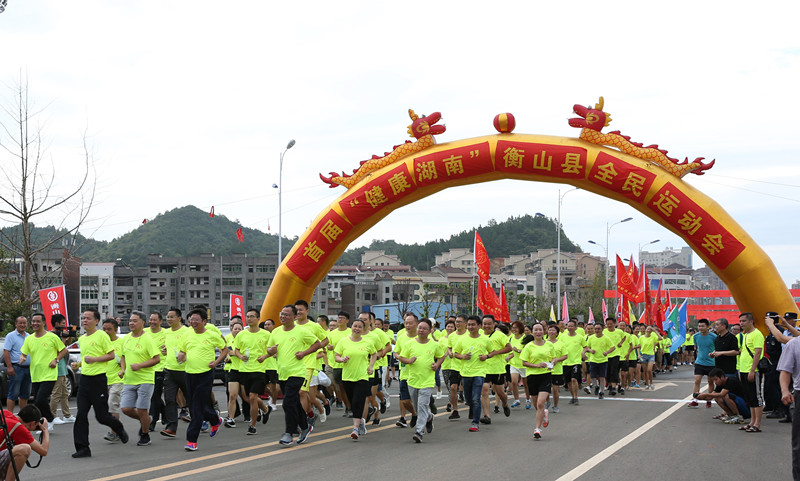 8月31日上午8时许,为倡导衡山广大群众追求绿色、健康、环保的生活方式,同时为即将开幕的第十三届湖南省运动会营造良好氛围,首届“健康湖南”衡山县全民运动会健康跑活动在新落成的衡山体育馆前激情开跑。