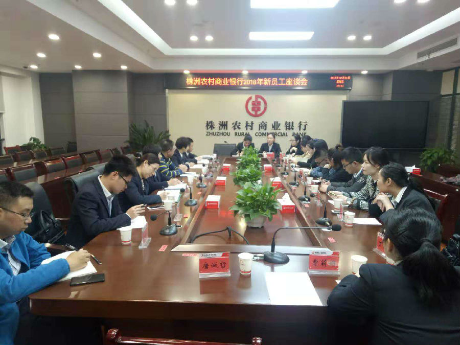 10月24日,株洲农商银行组织开展2018年新员工座谈会,会议由行团委书记邹自强主持,党委委员、监事长肖江生,人力资源部总经理郭中华,党群工作部总经理罗治君,行团委委员和2018年新进员工参加此次座谈会。
