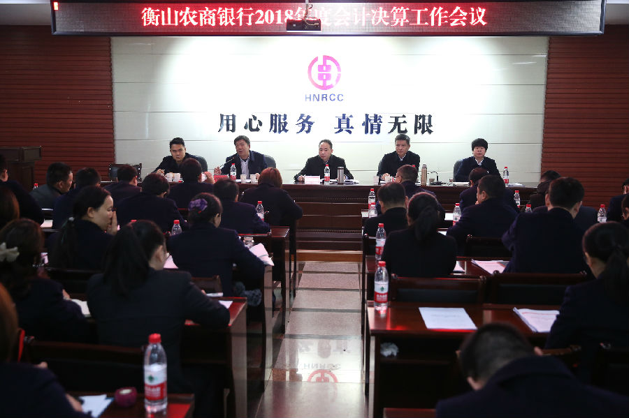 为认真贯彻落实省联社年度决算会议精神,确保2018年度决算工作顺利开展,真实反映经营成果,12月20日,衡山农商银行召开了2018年度会计决算工作会议,行领导班子、机关部室负责人、各支行行长、主办会计共60余人参加了会议。