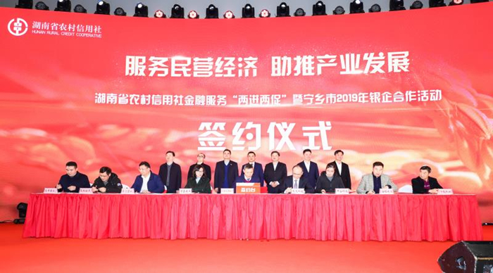 1月12日,省农信联社在宁乡高新技术产业园举办“服务民营企业 助推产业发展”——湖南省农村信用社金融服务“两进两促”暨宁乡市2019年银企合作活动,省农信联社党委副书记、主任李勤出席活动并讲话,党委委员、副主任徐达华主持活动仪式。人民银行长沙中心支行党委委员、副行长曾涛,宁乡市委副书记、市长付旭明出席活动并讲话。