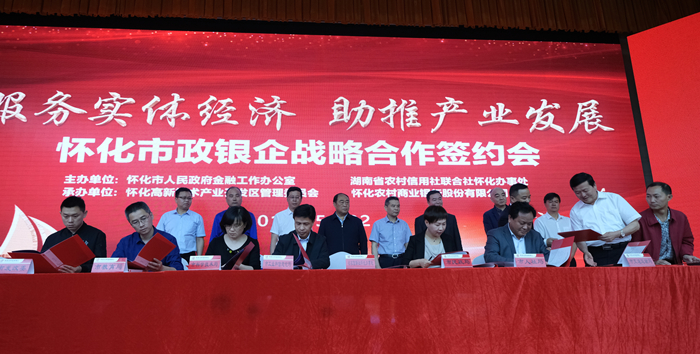 此次政银企战略合作签约会议是由怀化市政府金融办与省农信联社怀化办事处共同主办,怀化高新区管理委员会与怀化农村商业银行联合承办,旨在贯彻落实省委、省政府和怀化市委、市政府关于深化民营和小微企业金融服务的战略部署,搭建“政银企”交流合作平台,提升金融服务实体经济的水平。会上,省农信联社怀化办事处与16个市直单位、部门签订了战略合作备忘录,共同推进双方常态化、深层次合作;12家农商银行与3个地方商会、2个行业协会、4个产业园区及18家重点企业签订了授信意向协议,进一步加强了金融与地方经济发展的“同频共振”。