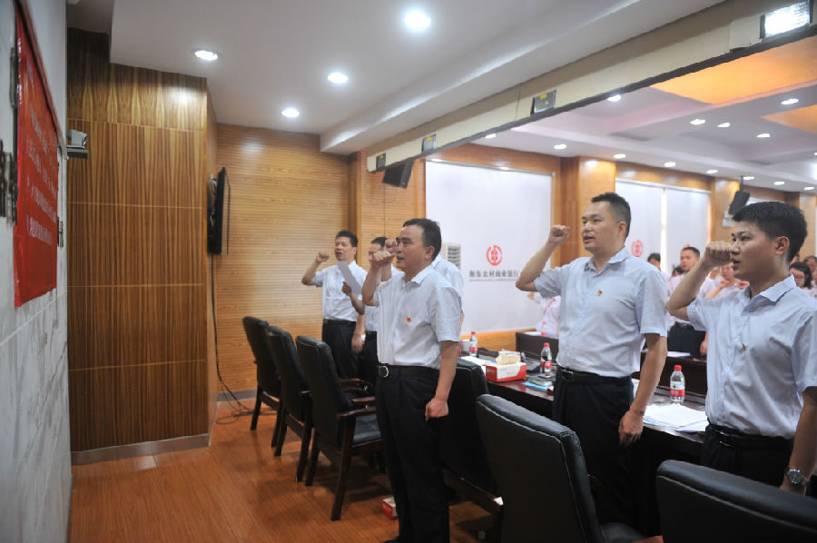 李来华在动员报告中指出,一要深化思想认识,增强开展主题教育的政治自觉。全行上下要充分认识到开展主题教育是坚持用习近平新时代中国特色社会主义思想武装头脑、是推进新时代党的建设的迫切需要,是保持党同人民群众血肉联系、是实现省联社确定的改革发展目标任务的迫切需要。二要把握总体要求,高质量落实主题教育各项工作。全面把握“守初心、担使命、找差距、抓落实“的总要求,在实现目标任务上、用好重点措施上、做好结合文章上下功夫,制定切实可行的实施方案,高质量做好各项工作。三要精心组织推进,确保主题教育扎实有效地开展。通过压实领导责任、坚持工作标准、加强宣传引导,引导全行党员干部明初心、守初心,担当使命,奋发作为,凝聚起推动衡东农商银行高质量发展的强大力量!全体参会人员在李来华的带领下作《湖南农信人承诺》宣誓。