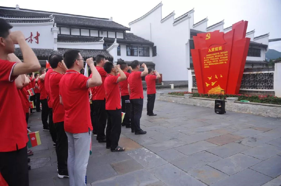 在沙田军规广场,全体党员通过现场听讲解、看实物,集体学习“三大纪律,八项注意”,让全体党员明白第一军规颁布的伟大历史意义,从中领悟到遵守工作纪律对农商行干部员工的重要作用。在“半条棉被”的故事发生地汝城县沙洲村徐解秀旧居,全体党员认真聆听了“半条棉被”的故事,深刻感受共产党崇高的理想和坚定的信念,全体老党员和新党员一起怀着崇敬的心情宣读入党誓词。在郴州市湘南起义纪念馆,全体党员认真听工作人员的现场解说,以及观看展板、贴画等诸多历史文物后,大家进一步了解了湘南起义的事件过程以及其深远的历史意义,近距离感受共产党员先烈的英雄事迹,打好履行职责使命的思想基础。
