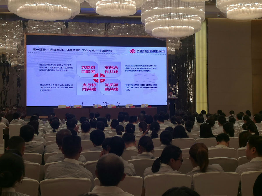 党委书记、董事长刘运年在大会主题报告中强调“党建共创、金融普惠”行动是湖南省农信系统推动党建与业务融合发展的全新探索,是推进金融核心业务提升工程的战略举措。一是务必提高站位、强化担当,坚定决战决胜的信心决心,全员集结吹响冲锋号角、擂响总攻战鼓;二是务必咬定目标、真抓实干,聚焦决战决胜的重点难点,全员出击抓好党建共创、做好金融普惠;三是务必压实责任、从严奖惩,强化决战决胜的保证保障,全员参与汇聚攻坚合力、确保工作实效。全体员工要以开局就是决战、起步就是冲刺的状态,拧成一股绳、搏尽全身力,坚决打赢“党建共创、金融普惠”攻坚战、持久战,创造无愧于新时代的光辉业绩,为推动湖南农信事业行稳致远贡献强大力量。