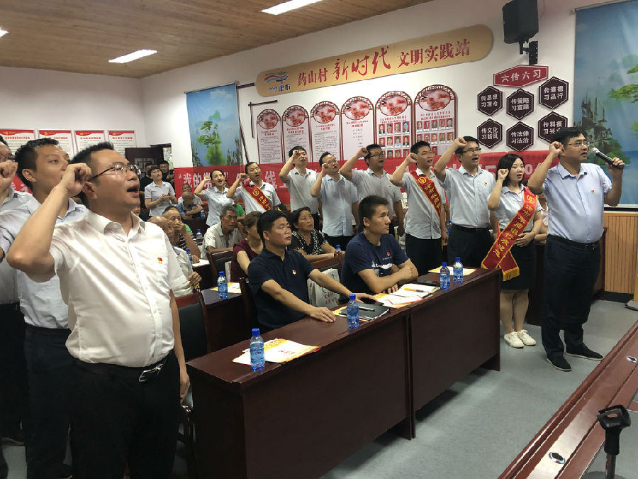 活动现场,该行行长郭懿锋宣布活动启动,并带领工作人员集体宣誓,诵读《湖南农信人的承诺》,表明该行致力建设有温度的百姓银行的决心;随后,津市市药山镇党委书记胡永乐作了热情洋溢的宣传发动,对农商行宣讲活动表示了肯定和支持,郑重表态乡镇党委将与农商行党委合作共建,共同落实“党建共创、普惠金融”工作;棠华支行行长汪成同志从转变作风、优化服务、提供有效金融支持方面进行了服务承诺。