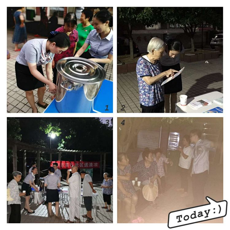 “嗲嗲、娭毑 ,来我们这里喝杯凉茶吧,这个凉茶是我们特意在养生堂配的”“你们这个就是正宗的凉茶,好久都没喝过了”,一声声亲切的呼唤,一杯杯饱含着情意的凉茶,唤起了居民们对农商银行的记忆。“那时候,我们家的钱都存在信用社,还是对他最放心”。这是株洲农商银行营业部在竹山小区开展“夏日送清凉”活动。