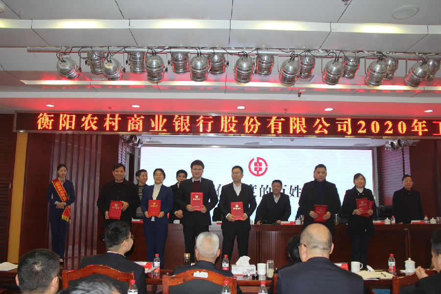 1月18日,衡阳农商银行召开2020年工作会议暨先进表彰大会,衡阳农商银行行领导、各支行正副行长、机关部室员工、先进个人代表、职工代表等共计170余人参加会议。衡阳农商银行党委委员、监事长谭会生主持会议。