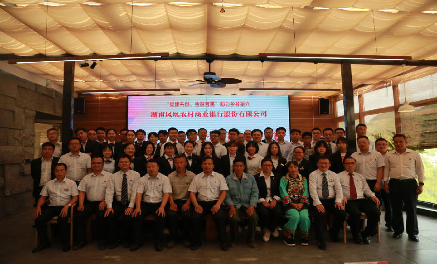 会议由总行党委委员、副行长宋海东主持;总行党委书记、董事长向云勇及其他领导班子成员,凤凰旅投开发建设有限责任公司董事长张顺心,麻冲乡竹山村村支两委,各基层党支部书记及青年员工代表共六十余人参加会议。
