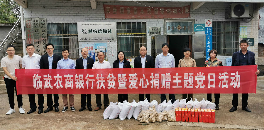 为充分体现对贫困户的关爱和帮助,提高贫困群众满意度,中秋、国庆“双节”即将来临之际,9月29日上午,临武农商银行党委书记、董事长阳秀丽携帮扶责任人到该行定点帮扶贫困村——麦市镇瓦石村开展“叙亲情话扶贫”主题党日活动,将“双节”慰问物质及对困难群众的脱贫愿景送到瓦石村,为助力全县脱贫攻坚做出积极贡献。