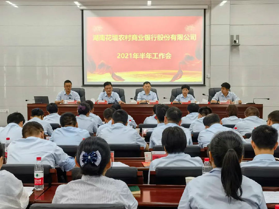 7月9日,花垣农商银行召开2021年半年工作会暨“两优一先”表彰会,行党委班子成员、支委委员、部门及支行负责人、会计主管参会。