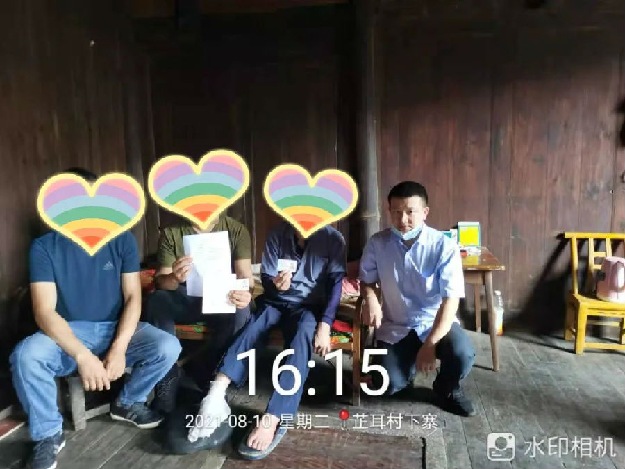 双龙镇让烈村的石某在替母亲支取存款时,发现其母亲的客户信息失真导致后续业务无法办理,而石某的母亲双目失明多年,行动十分不便。了解到这一情况后,排碧支行客户经理石标与主管会计杨柳一同来到石某家中,在确认石某母亲的实际情况和意愿后,快速完成了信息采集、现场拍照等手续,随后赶回支行为其办理了失真修正。在完成信息修正并顺利支取存款后,石某感激地说:“你们真是老百姓的银行,上门服务贴心又周到!”