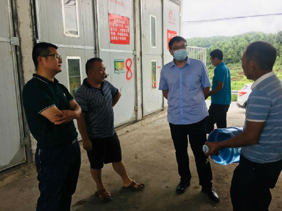 图为董马库支行联合双龙镇政府在集中烤房与烟农交谈
