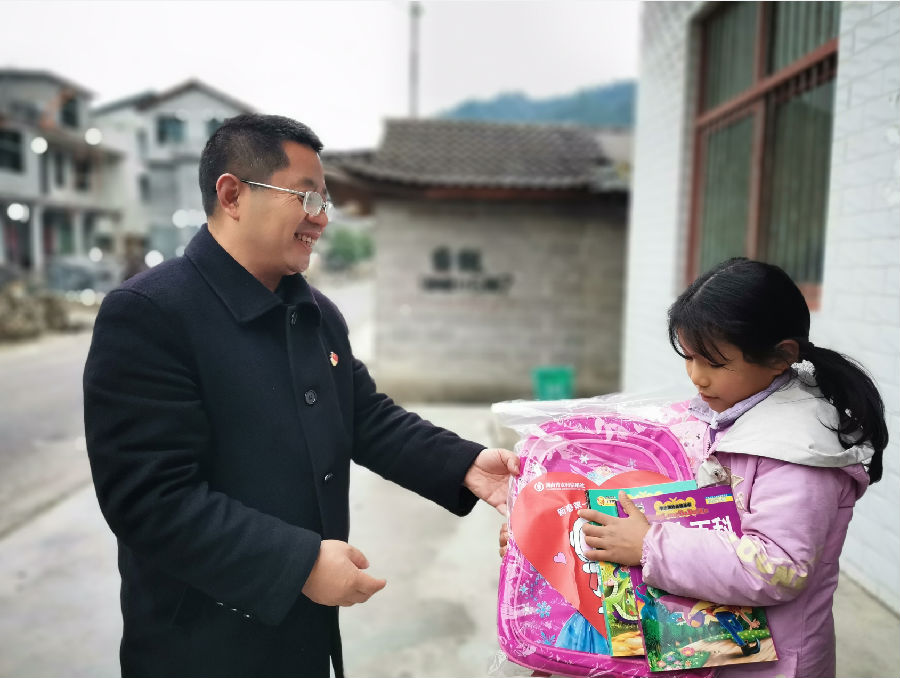 该支行在支行行长伍先仁带领下,结合前期走访征集的“微心愿”清单,带着新春祝福及爱心大礼包奔赴帮扶对象家中,及时为留守儿童送去新春祝福和节日慰问,帮助其实现内心小小的渴望与心愿。刚步入砂坪村便听见了孩子们欢呼雀跃的声音,伍行长快步上前,来到孩子们中间,与他们细心交流、嘘寒问暖,耐心询问他们学习、生活和健康情况,勉励孩子们以乐观向上的态度迎接学习和生活中的困难与挑战。随后,根据孩子们的“微心愿”,为他们送上了零食大礼包、适龄读物、文具盒、新书包等物品,鼓励孩子们好好学习,快乐生活、成长成才。