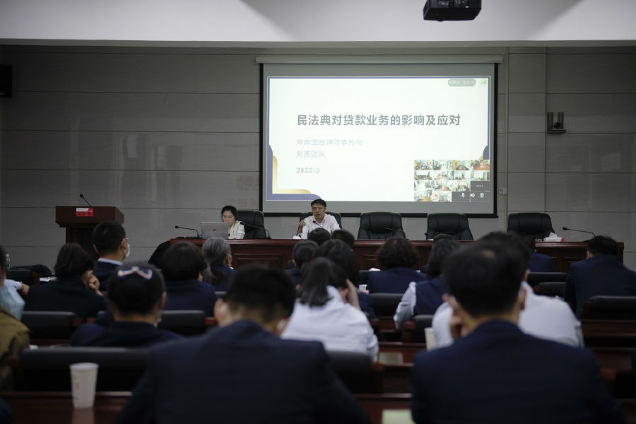 “客户在外地,视频签字是否有效?”“借款后发现贷款用途不实,如何提前收回贷款?”“工业土地抵押,上有无房产证的厂房,如何追偿?”……来自湖南思维律师事务所刘涛团队的授课专家首先对收集上来的问题从法理角度逐一进行了解答,就追偿诉讼流程进行了提醒和强调;针对员工所聚焦问题,分别从“民法典对贷款本身影响”、“民法典对不动产抵押的影响”、“更优先权利排查”三个方面进行授课。专家时而引经据典,时而结合案例,时而精析法律条款;在座员工专注聆听,并通过与专家互动交流,增强了对相关知识的了解和掌握。