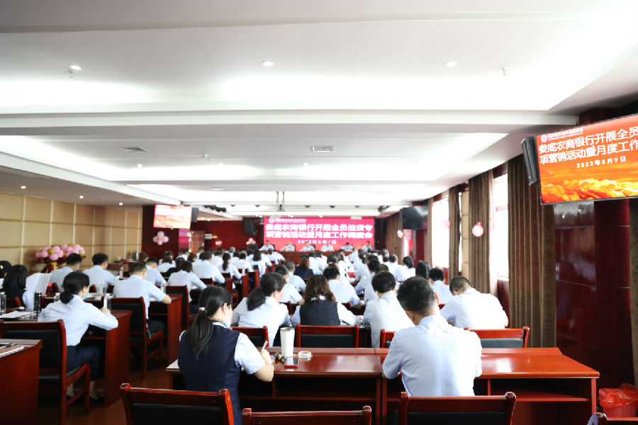 为全面推广普惠金融,助力乡村振兴,5月9日,娄底农商银行开展全员信贷专项营销活动暨月度工作调度会,该行班子成员、机关部室经理,各支行行长、副行长及委派会计等90余人参加。