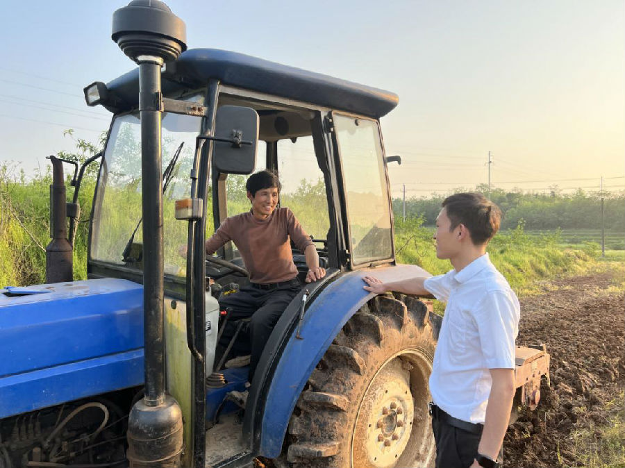 湘潭农商银行姜畲支行工作人员走访种粮大户。