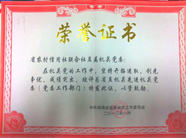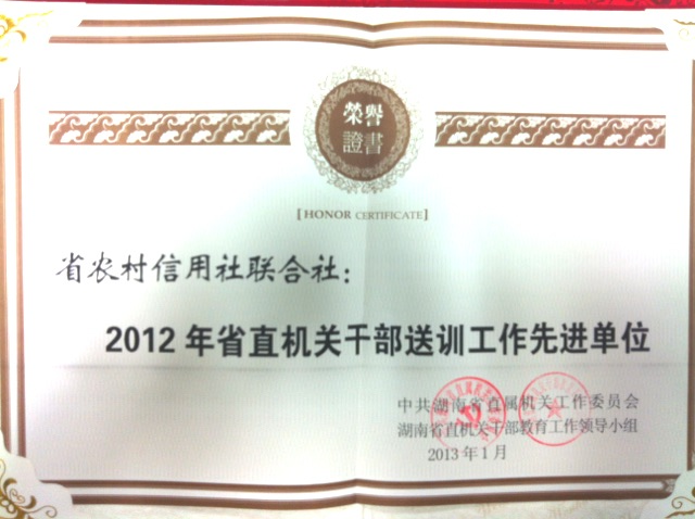 1月14日,在省直机关党的工作暨经济形势分析会议上,省联社的干部送训工作和机关党建工作得到了领导高度评价,省联社被评为“2012年省直机关干部送训工作先进单位”,省联社直属机关党委被评为“省直机关先进机关党委”。