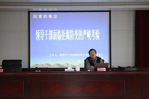 1月25日,省联社机关定期学习一月讲坛在机关办公大楼二楼会议室举行。讲坛邀请了湖南省人民检察院职务犯罪预防处处长绕力明授课。饶力明处长以《领导干部面临拒腐防变的严峻考验》为题,结合典型的实例,做了精彩的主题演讲。省联社领导、机关全体员工以及长沙市联社机关人员共100余人参加了学习。