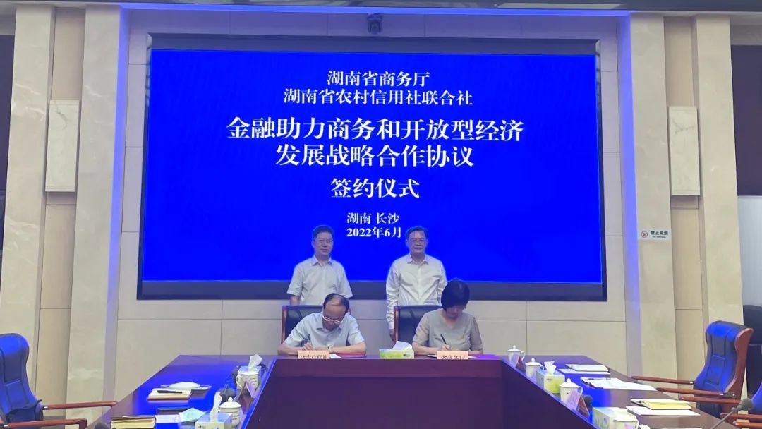 根据协议,双方在互利互惠的基础上,将在商务和开放型经济领域开展全面合作,着力推动商务重点项目发展和县域商业体系建设。湖南农信系统将创新金融产品和服务,在未来五年,每年将向内贸消费、商务流通、外贸外经等相关产业提供不低于500亿元的意向性融资支持,全力促进商务和开放型经济繁荣发展。