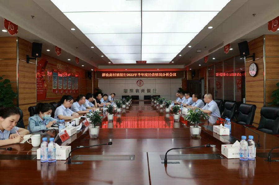 7月8日下午,湘潭农商银行组织由该行主发起设立的攸县、洞口、衡山、新宁、宁远五家潭农商村镇银行在二楼会议室召开2022年半年度经营情况分析会议,湘潭农商银行党委班子成员、五家村行经营层主要负责人及我行相关业务部门负责人参加此次会议。会议由湘潭农商银行党委书记、董事长张锴主持。