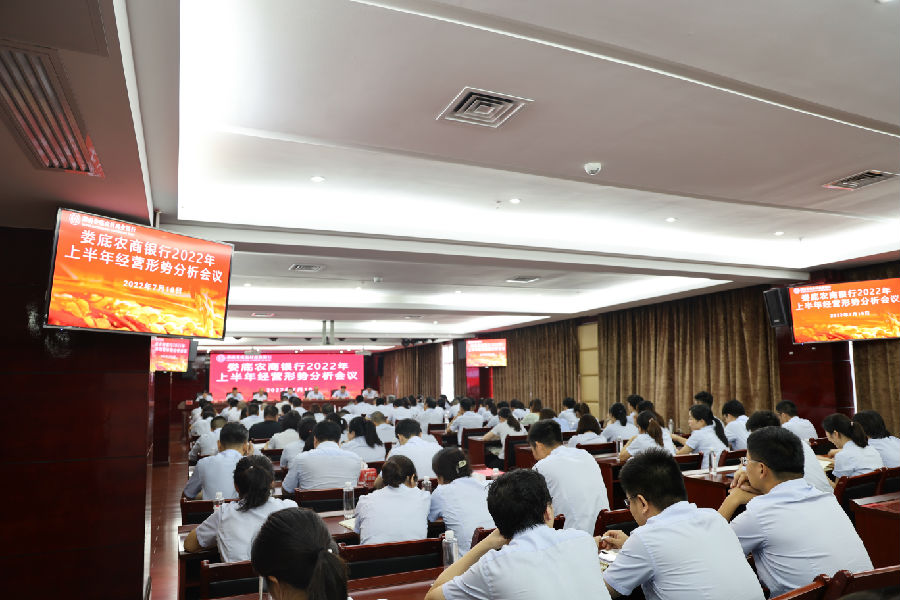 8月18日,娄底农商银行召开上半年经营形势分析会,总结回顾上半年工作情况,分析当前存在的问题及全面部署下阶段重点工作。党委书记、董事长李利民出席会议并讲话,党委副书记童卫中主持会议。总行领导班子、部室经理,各支行行长、副行长、客户经理及委派会计等110余人参加了会议。