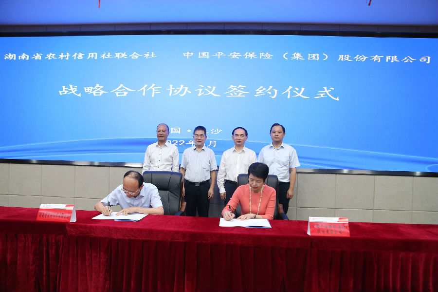 8月19日下午,湖南省农村信用社联合社与中国平安保险(集团)股份有限公司签署战略合作协议。