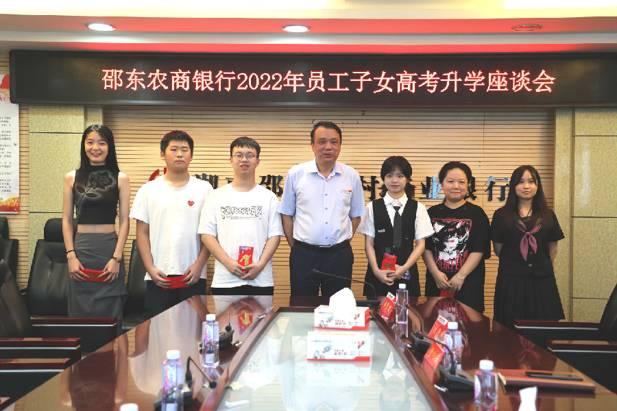 会上,谢行长代表党委班子对今年在激烈的高考竞争中脱颖而出的员工子女及家长们表示了热烈的祝贺,并与学子们展开了亲切交谈。他表示,一直以来,邵东农商银行作为地方金融主力军,始终坚持稳健经营,综合实力不断增强,经营效益稳步提升,这一系列优异成绩的取得,都离不开全体员工的努力,也离不开员工家属的理解、支持和奉献。组织本次升学座谈会,不仅是让学子们分享金榜题名的喜悦、品尝收获成功的甘甜,更是希望员工子女们能常怀感恩之心,掌好人生之舵,努力深化学习、锻炼自我,以实际行动和优异成绩回报来自家庭和农商银行的关心和关爱。