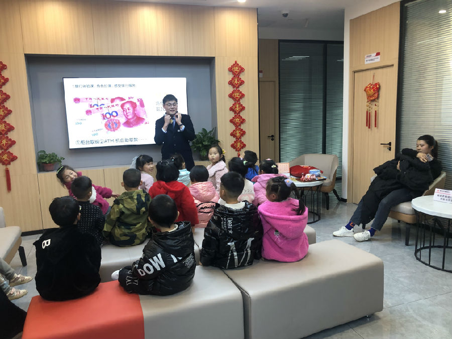 本次活动,工作人员将流程分为三个模块。一是带领孩子和家长参观银行大厅、柜台、自助设备等区域,介绍各个区域的功能和使用方法。通过让孩子亲自完成取款挑战,培养孩子的动手和表达能力,社会体验感进一步提升;二是用生动的语言和有趣的动画向儿童介绍货币的起源、演变和功能,充分利用知识竞答环节,让小朋友了解什么是银行、如何识别假币、如何准确把握人民币的防伪特征等金融知识;三是现场发放小面额人民币教授小朋友点钞,让小朋友们亲身体验、亲身学习,大家都争做点钞小能手,整个银行充满欢声笑语,孩子们学得有模有样,收获满满!