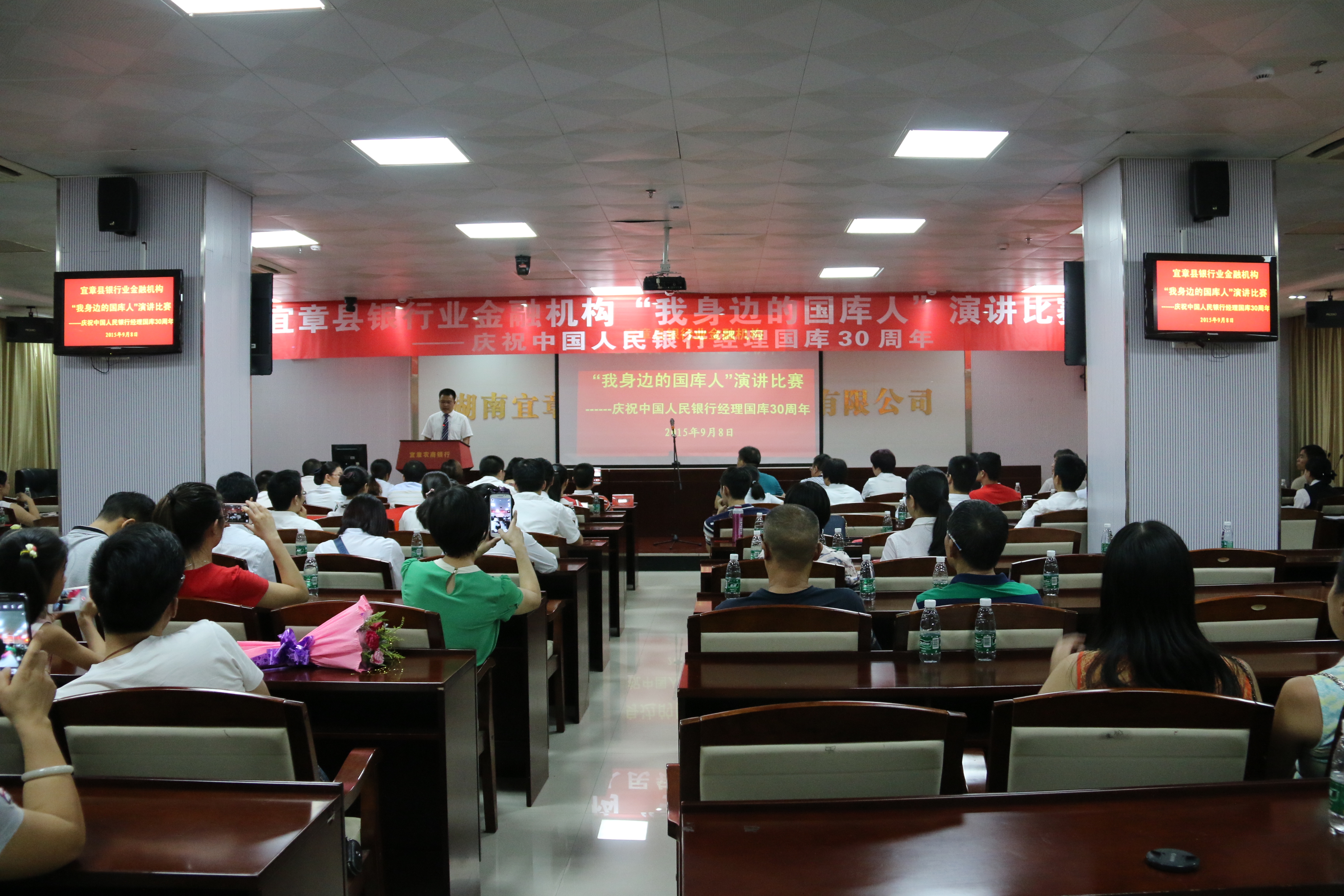为庆祝中国人民银行经理国库30周年,9月8日晚,宜章农商银行和中国人民银行宜章支行联合举办了宜章县银行业金融机构“我身边的国库人”演讲比赛。各金融机构行领导、银行从业人员共100余人观看了比赛。
