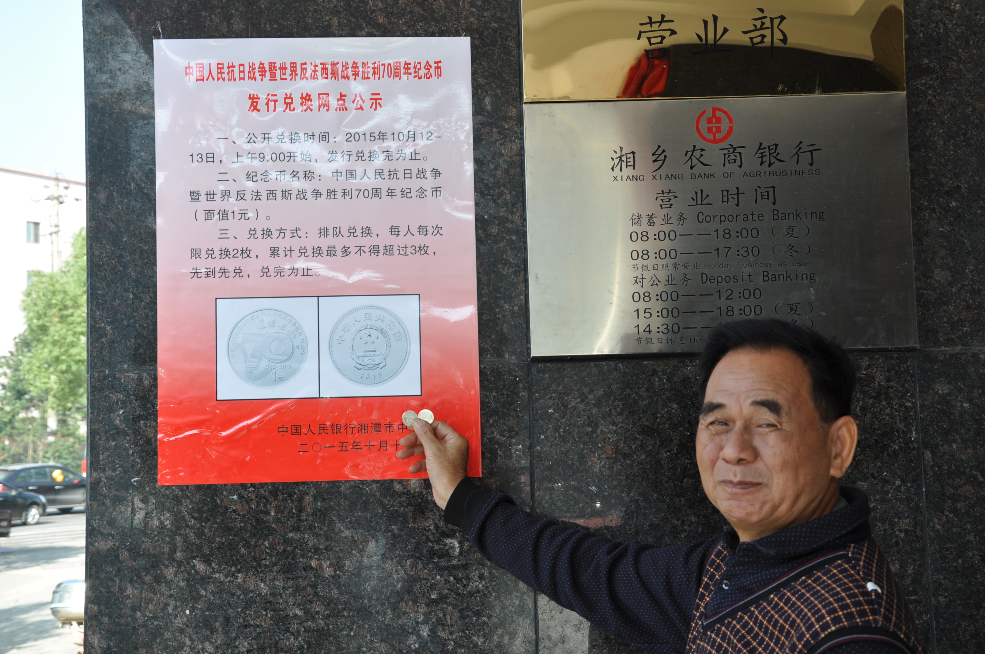 “快去农商行兑换抗战纪念币,好多人咧!”这是今天湘乡市民的热门话题。大家口口相传,很快,湘乡农商银行的几个兑换网点就排起了长队,这场景比赶集还热闹。10月12日上午9点30,第一批抗战纪念币共22000枚在总行营业部、虞塘支行、月山支行、东山支行正式开始兑换,兑换的时间为上午9:30-11:30,下午3:00-5:00,本次兑换持续到10月13日。